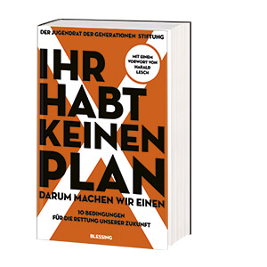 Eine Generation, die lange Zeit als unpolitisch belächelt wurde, steht auf, organisiert Proteste, an denen landesweit Hunderttausende und weltweit Millionen teilnehmen. Angesichts schwindender Ressourcen und globaler Vermüllung stellen sie die Forderung nach nachhaltigem Klima- und Umweltschutz. Acht Autoren und Aktivisten, Mitglieder des Jugendrates Generationen Stiftung, warnen nicht nur vor den Gefahren, denen sich die heutigen 14- bis 25-Jährigen ausgesetzt sehen. In genau recherchierten Beiträgen, die mit den Erkenntnissen anerkannter Wissenschaftler abgeglichen sind, stellen sie konkrete Forderungen, nehmen uns alle in die Verantwortung und entwerfen eine Vision, die die Kraft hat, Generationen zu vereinen. Mit einem Vorwort von Harald Lesch. Der Jugendrat der Generationenstiftung, Claudia Langer (Hrsg.): Ihr habt keinen Plan, darum machen wir einen! Blessing 2019, 12 Euro. (Amazon-Werbelink)